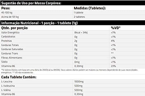 Leucina, isoleucina, valina, cápsula de gelatina (gelatina e água purificada) e vitamina B6 (piridoxina). NÃO CONTÉM GLÚTEN.