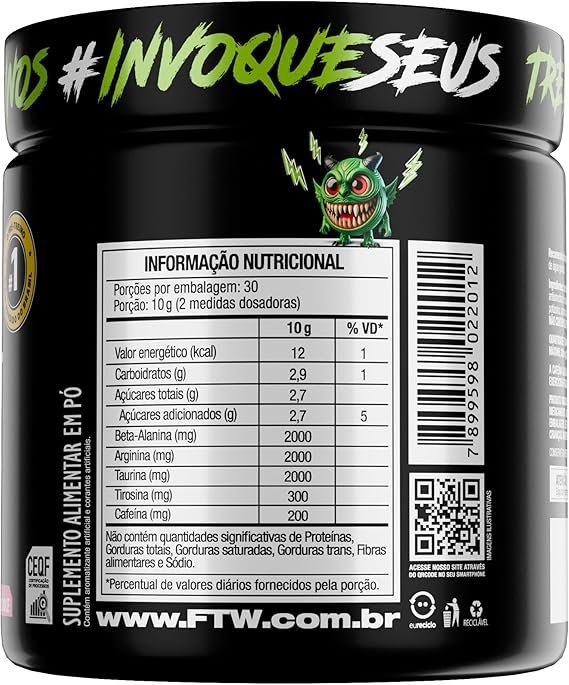 Seja o primeiro a avaliar “FTW Pré-Treino Diabo Verde em Pó com Cafeína, Aminoácidos Beta‑Alanina e Arginina para Treinos e Atividades Físicas – Pote 300 g (Frutas Amarelas)”