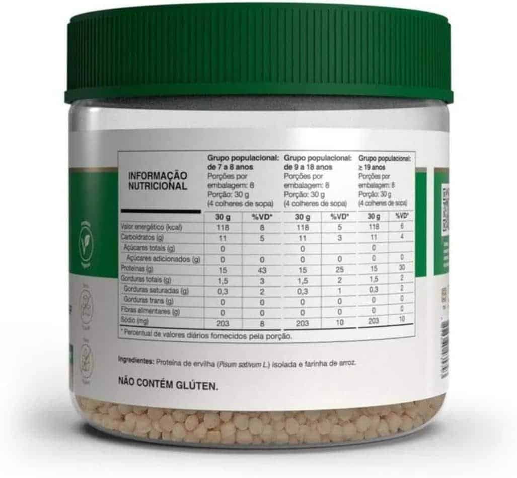 Ingredientes: Proteína de ervilha (Pisum sativum L.) isolada, farinha de arroz e fibra de beterraba.