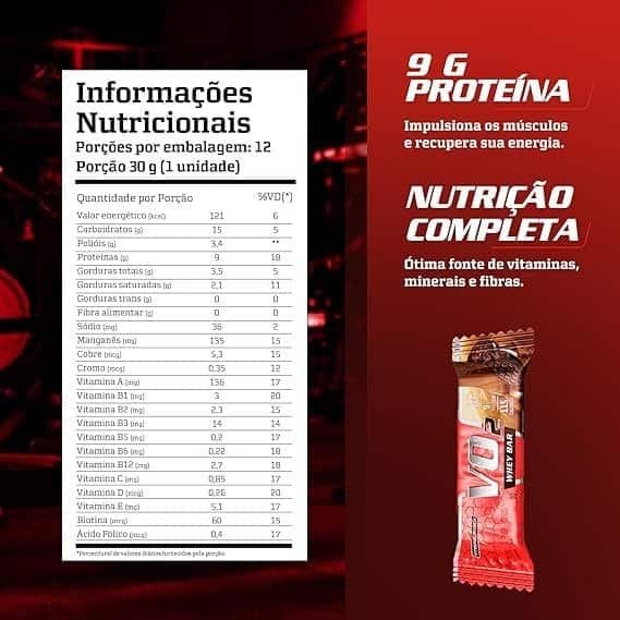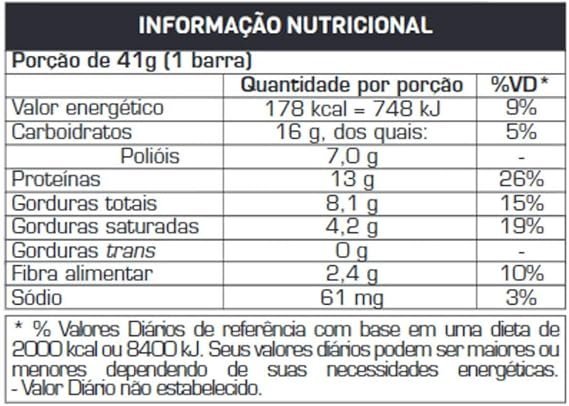 | Ingredientes | Amendoim, proteína isolada de soja crocante, coco, castanha do Pará, mel de abelha, amêndoa, açúcar de coco, óleo vegetal, proteína isolada de soja em pó, óleo de coco, sal, estabilizante: polidextrose, espessante: goma arábica, emulsificante: lecitina de soja, antioxidante natural: Vitamina E (tocoferol). |