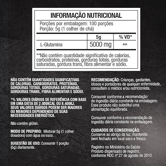 L-Glutamina. NÃO CONTÉM GLÚTEN.
