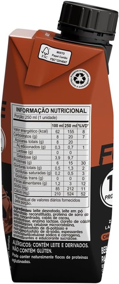 | Ingredientes | Leite desnatado, leite em pó desnatado reconstituído, soro de leite (whey) concentrado, calda de cacau, polidextrose, enzima lactase, cloreto de cálcio, estabilizantes celulose microcristalina, fosfato dipotássico e fosfato dissódico, espessantes carboximetilcelulose sódica e carragena, aromatizantes e edulcorante sucralose. |