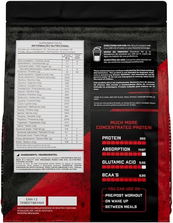 - SÍNTESE PROTEICA: Whey concentrado derivado do soro do leite que aumenta síntese proteica e promove ganho de massa muscular de forma eficiente